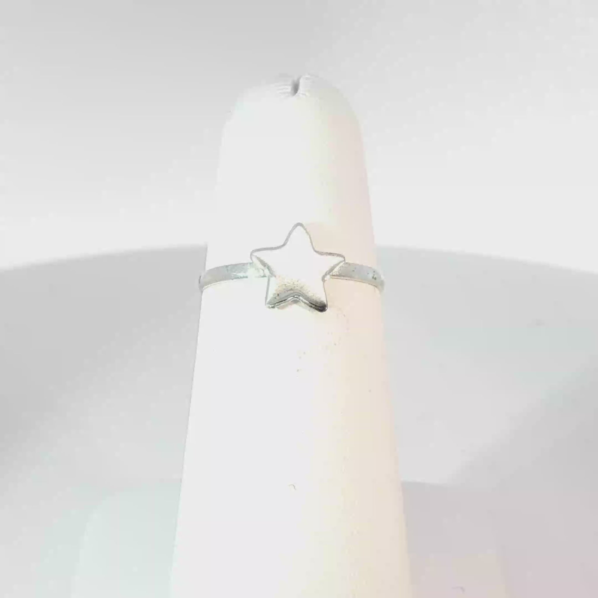 Elevate your everyday style with this charming silver band ring. Its sleek design features a delicate star accent, offering a touch of celestial grace to any ensemble. This band ring is the perfect subtle statement piece, lending a modern and minimalist aesthetic to your look.